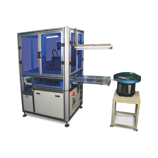3. 本机采用振动盘自动上料后经皮带传动到相关位置后,凸轮摇臂机械手将屏蔽盖逐一放到预定位工站,