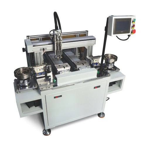 3. 采用两种不同的振动盘供料,取料吸咀采用双吸咀取料,从而做到兼容两种不同的螺母。